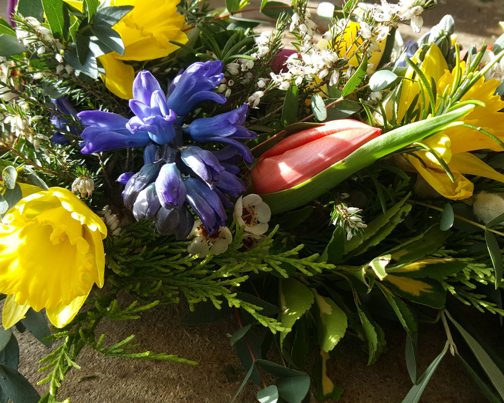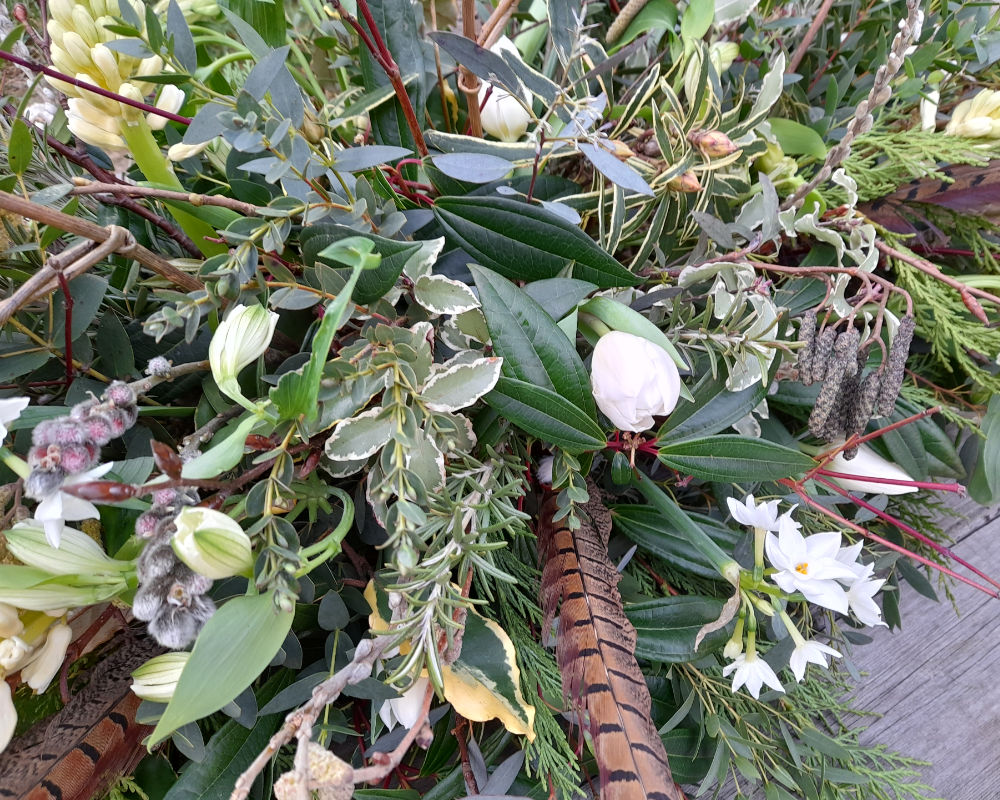 I deliver to Salisbury, Andover, Amesbury and their surrounding villages. Anything from funeral tributes for the coffin or the grave side, biodegradable designs suitable for woodland burial grounds, or a sympathy bouquet for someone who has lost a special person.